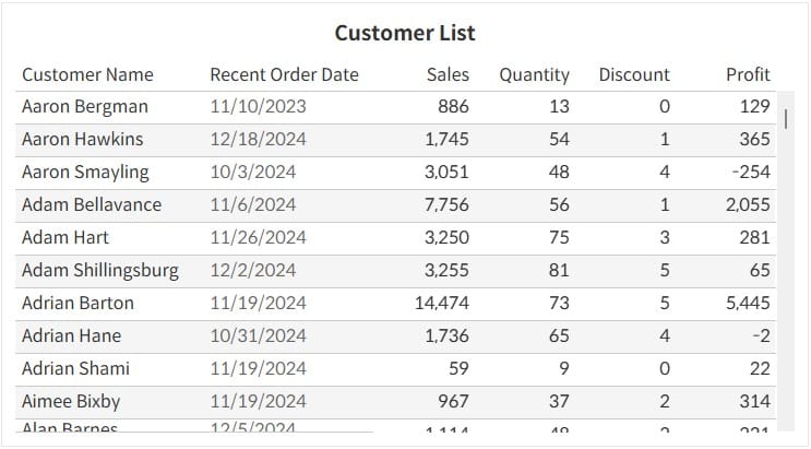 Customer Name필드를 기준으로 페이지네이션을 적용할 고객 목록 화면을 만들어줍니다.