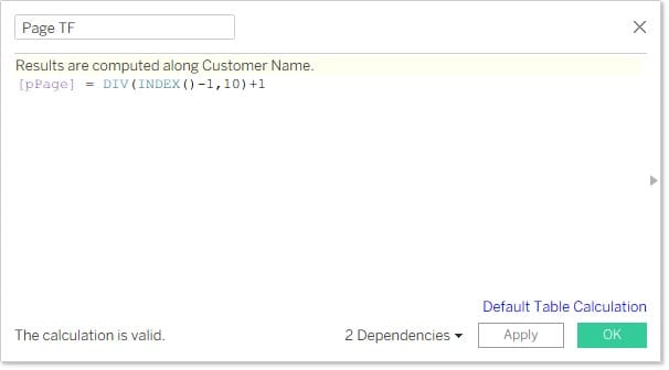 Page TF계산식을 필터 패널에 적용합니다.- 페이지 네비게이션을 만들기 위한 계산식들을 생성합니다.